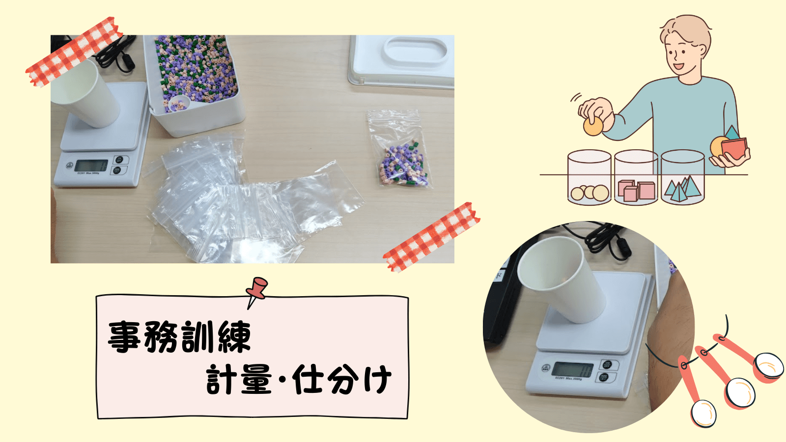 その中のひとつが、計量や仕分けといった事務訓練です。