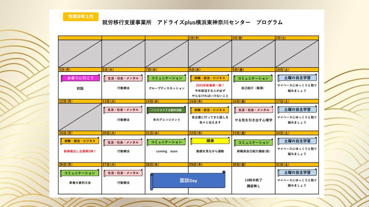遅くなりましたが1月のプログラムのご紹介です。